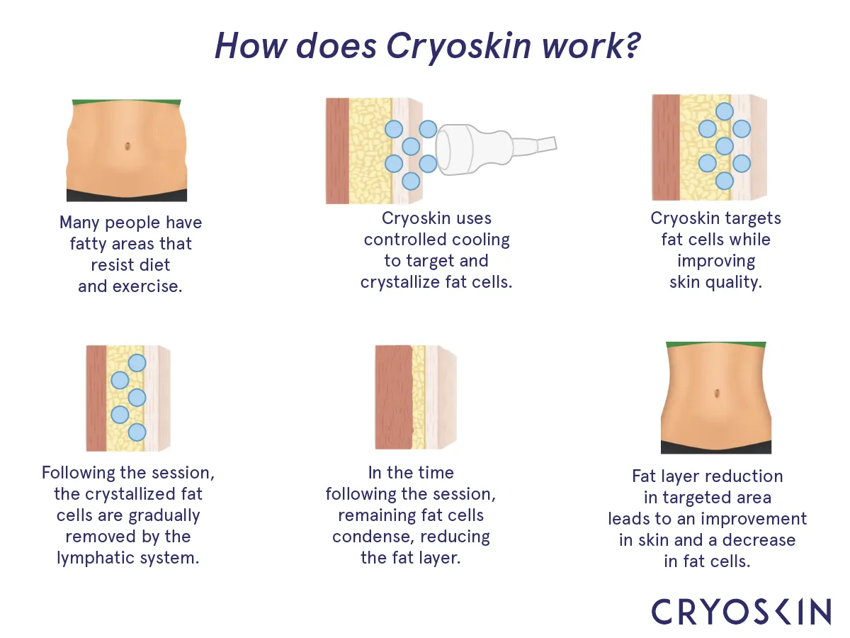 Cryoskin is a cold treatment and is CE-approved, as well as approved by the American Academy of Cosmetic Surgery.